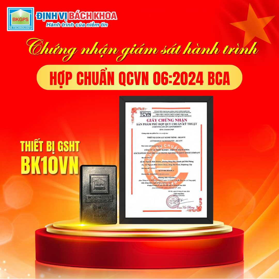 Định Vị Bách Khoa vinh dự trở thành đơn vị đầu tiên được Viện Tiêu chuẩn Chất lượng Việt Nam chứng nhận đáp ứng Quy chuẩn kỹ thuật quốc gia Việt Nam QCVN 06:2024/BCA của Bộ Công An, đồng thời cho 02 dòng thiết bị giám sát hành trình (GSHT) ô tô, gồm: