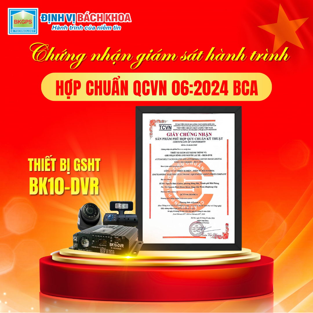 Định Vị Bách Khoa vinh dự trở thành đơn vị đầu tiên được Viện Tiêu chuẩn Chất lượng Việt Nam chứng nhận đáp ứng Quy chuẩn kỹ thuật quốc gia Việt Nam QCVN 06:2024/BCA của Bộ Công An, đồng thời cho 02 dòng thiết bị giám sát hành trình (GSHT) ô tô, gồm: