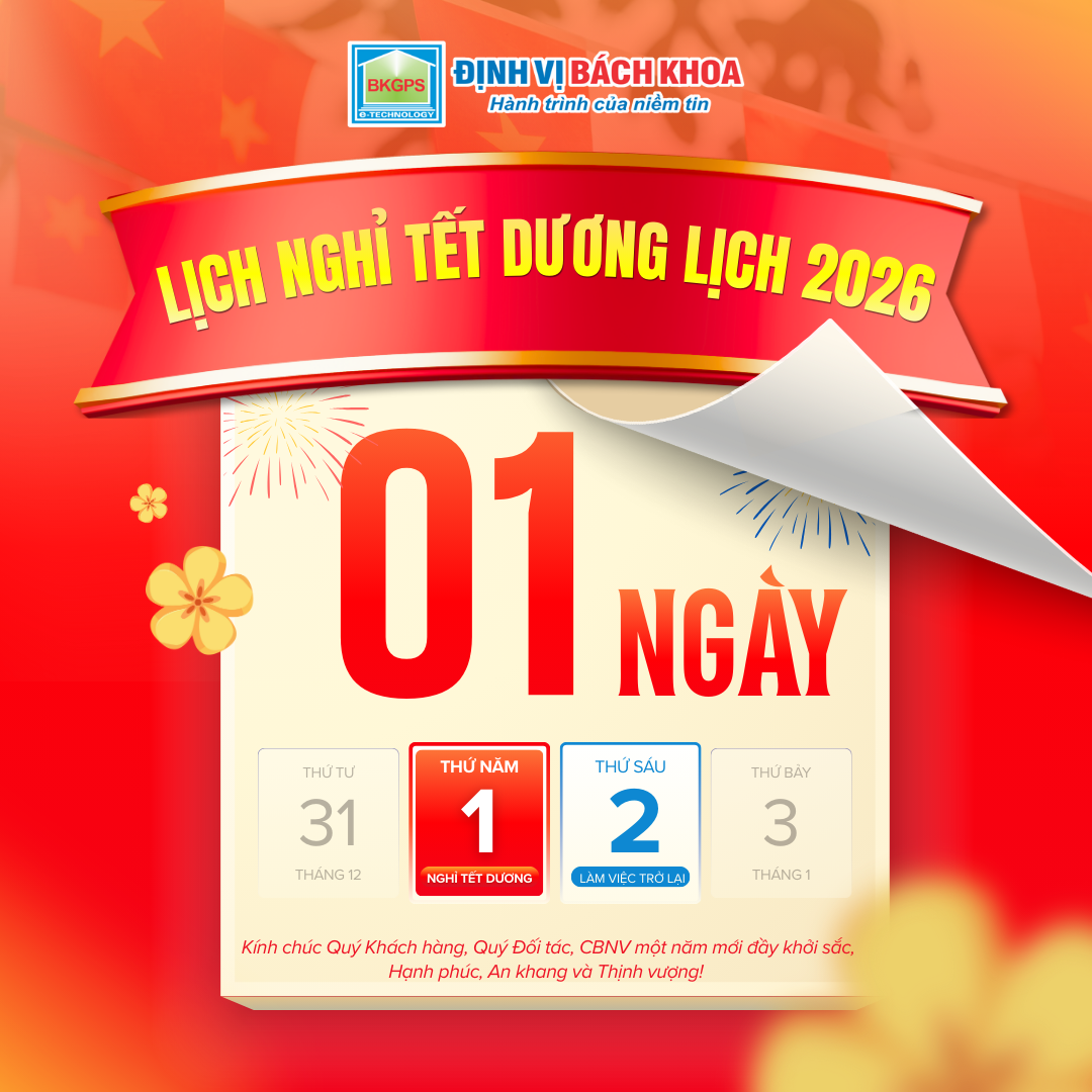 Để thuận tiện trong kế hoạch làm việc, Định Vị Bách Khoa xin trân trọng thông báo đến Quý Khách hàng, Quý Đối tác về lịch nghỉ Tết Dương lịch 2026, cụ thể như sau: